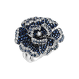 Tento prsteň z bieleho a čierneho zlata, pokrytý diamantmi a zafírom, je poctou triumfu a elegancie. Každý kameň žiari ako symbol úspechu, prestíže a výnimočnosti. Vyrobené pre ženu, ktorá si zaslúži to najlepšie. Šperk je súčasťou kolekcie Flowers.