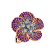 Tento 18kt prsteň z ružového a bieleho zlata, zakončený diamantmi a ružovým zafírom, je poctou triumfu a elegancie. Každý kameň žiari ako symbol úspechu, prestíže a výnimočnosti. Vyrobené pre ženu, ktorá si zaslúži to najlepšie. Šperk je súčasťou kolekcie Flowers.