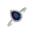 Překrásný modře zbarvený safír perfektně vyniká díky unikátnímu brusu ve tvaru kapky. V objetí třpytivých diamantů a bílého zlata tvoří hlavní dominantu pohádkového prstenu Charming Glory, který na vaší ruce bude vypadat naprosto skvěle.