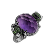 18kt prsteň z čierneho zlata s diamantom, brazílskym ametystom a granátovou zelenou, ktorý je majstrovským dielom remeselného spracovania. Tento šperk je symbolom toho, že nekonečné možnosti sú na dosah tých, ktorí sa odvážia snívať vo veľkom. Šperk je súčasťou kolekcie Animals.