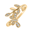Okúzľujúci prsteň ALOve zo 14kt žltého zlata s efektným detailom v podobe motýlika a lístka s trblietavými diamantmi pre každú ženu i príležitosť.