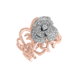 Tento 14kt prsteň z ružového a bieleho zlata s diamantmi je dokonalým doplnkom pre každú príležitosť. Jeho elegantný dizajn a jemný lesk pripomínajú úsvit nad horizontom, symbolizujú nové začiatky a nekonečné možnosti pre tých, ktorí vstupujú na novú cestu. Šperk je súčasťou kolekcie Flowers.