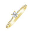 Briliantový zásnubný prsteň v žltom zlate je výnimočný šperk, ktorý svojim leskom zaujme na prvý pohľad. Obrúčka je posiata drobnými diamantmi a uprostred sa vyníma väčší briliant.