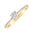Briliantový zásnubný prsteň v žltom zlate je výnimočný šperk, ktorý svojim leskom zaujme na prvý pohľad. Obrúčka je posiata drobnými diamantmi a uprostred sa vyníma väčší briliant.
