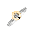 Prsteň vyrobený zo 14kt bieleho a žltého zlata s diamantmi je ako spojenie dvoch odtieňov krásy. Jeho farebné kombinácie a trblietavé diamanty sú ako prísľub nekonečnej elegancie a harmónie. Šperk je súčasťou kolekcie Luxury Classic.