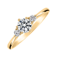 Luxusný prsteň s centrálnym diamantom je z každej strany doplnený čírym briliantom. Jemná obrúčka je vyrobená zo 14-karátového žltého zlata. Šperk je úžasný ako zásnubný prsteň alebo očarujúci darček.