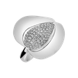 18kt prsteň z bieleho zlata zdobený diamantmi je ako najjasnejší diamant vo vašej zbierke. Jeho luxusný dizajn a lesk vám dodajú sebavedomie a rafinovanosť. Staňte sa kráľovnou vo svojom vlastnom svete. Šperk je súčasťou kolekcie Charming.