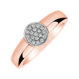 Originálny prsteň zo 14kt bieleho, ružového alebo ružového zlata s hrubšou obrúčkou s osadeným diamantmi do kruhu zaujme na prvý pohľad. Tento očarujúci prsteň poteší každú ženu, ktorá miluje výrazné šperky.