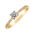 Luxusný zásnubný prsteň, ktorý jej vyrazí dych. Jemná zlatá obrúčka s centrálnym briliantom a menšími postrannými briliantmi je jedinečný šperk pre lásku vášho života. Žlté 14kt zlato, diamanty, nadčasový dizajn a nezameniteľný lesk tvorí z tohto prstienka naozaj výnimočnú voľbu.