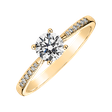 Luxusný zásnubný prsteň, ktorý jej vyrazí dych. Jemná zlatá obrúčka s centrálnym briliantom a menšími postrannými briliantmi je jedinečný šperk pre lásku vášho života. Žlté 14kt zlato, diamanty, nadčasový dizajn a nezameniteľný lesk tvorí z tohto prstienka naozaj výnimočnú voľbu.
