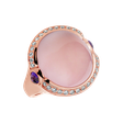 S prsteňom z ružového zlata s hmotnosťou 18kt, ktorý je osadený diamantom, ružovým kremeňom a brazílskym ametystom, dávate nielen šperk, ale aj svedectvo osobnej noblesy a elegancie. Tento nádherný šperk zažiari na každej žene a prinesie pôvab a sebavedomie, či už ho nosí pri zvláštnych príležitostiach alebo ako každodenný doplnok. Jeho jedinečný dizajn a výnimočná krása z neho robia dokonalý darček pre každú ženu, ktorá si cení chuť a kvalitu. Šperk je súčasťou kolekcie Blossoms.