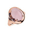 Ružový kremeň, zafírová ružová a precíznosť. 18kt prsteň z ružového zlata s diamantom, ružovým kremeňom a zafírovou ružovou je majstrovským dielom ručnej práce a ozdobou pre tých, ktorí poznajú hodnotu skutočnej krásy a sily. Šperk je súčasťou kolekcie Blossoms.
