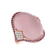 Text trblietok, poézia elegancie: tento prsteň v 18-karátovom ružovom zlate s diamantom, ružovým kremeňom a zafírovou ružovou je pieseň napísaná práve pre vás a vašu prirodzenú krásu. Šperk je súčasťou kolekcie Blossoms.
