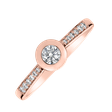Elegantný diamantový prsteň z ružového zlata je skvelá voľba pre žiadosť o ruku, ale aj nádherný darček. Minimalisticky okrúhly dizajn centrálne vsadeného kameňa je zvyraznený žiarivými briliantmi po stranách.