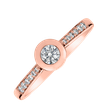 Elegantný diamantový prsteň z ružového zlata je skvelá voľba pre žiadosť o ruku, ale aj nádherný darček. Minimalisticky okrúhly dizajn centrálne vsadeného kameňa je zvyraznený žiarivými briliantmi po stranách.