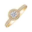Nádherný 14kt zlatý prsteň posiaty briliantmi je vyrobený v halo štýle. Centrálny diamant obklopený menšími je obľúbený dizajn pre zásnubné prstene. Tento trblietavý kúsok v žltom zlate je naozaj výnimočný šperk, ktorý si zamilujete.