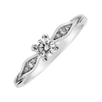 Neobvykle tvarovaný prsteň zo 14-karátového bieleho zlata zdobí centrálny diamant a po oboch stranách ho dopĺňajú menšie diamanty s originálnym osadením. Prsteň je ideálnou voľbou ako výnimočný zásnubný prsteň.