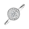 Nádherný 14kt zlatý prsteň s briliantmi je vyrobený v halo štýle. Centrálny diamant obklopený menšími je obľúbený dizajn pre zásnubné prstene. Tento trblietavý kúsok v bielom zlate je naozaj výnimočný šperk, ktorý si zamilujete.