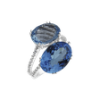 Objavte spojenie teplého lesku 14kt bieleho zlata, oslnivých diamantov, švajčiarskeho topásu a topásovej oblohy a vytvorte symfóniu svetla a elegancie v tomto luxusnom prsteni. Rozmaznávajte svoj zmysel pre krásu s touto jemnou poctou úspechu a sofistikovanosti. Šperk je súčasťou kolekcie Fantasy.