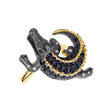 Každý váš pohyb bude teraz sprevádzaný fascinujúcim zábleskom diamantov starostlivo zasadených do krásneho prsteňa zo 14kt žltého a čierneho zlata, zdobeného diamantom, zafírom a smaragdom. Tento klenot prekypujúci eleganciou a sofistikovanosťou je ideálny na zdôraznenie vašej jedinečnosti. Šperk je súčasťou kolekcie Animals.