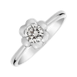 Jemný prsteň v tvare kvetu s briliantom uprostred je dokonalým šperkom pre všetky romantické a prírodu milujúce duše. Originálny dizajn zo 14kt zlata v bielej, ružovej alebo žltej farbe zaručuje jedinečný zásnubný prsteň.