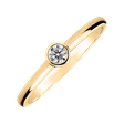 Jemný prsteň z bieleho, žltého alebo ružového 14kt zlata. Zaujímavo zasadený okrúhly briliant je spojenie tradičného zásnubného prstienka s praktickosťou hladkého tvaru. Šperk sa hodí ako na žiadosť o ruku, tak aj ako krásny darček.