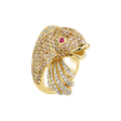 Prsteň vyrobený z 18kt žltého zlata s hnedými a žltými diamantmi, rubínom a rubínom, ktorý sa môže pochváliť svojou dokonalosťou a starostlivo vybranými kameňmi, je symbolickou pečaťou večnej elegancie. Šperk je súčasťou kolekcie Animals.