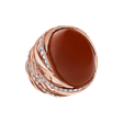 Prsteň vyrobený z 18kt ružového zlata s diamantmi a oranžovým mesačným kameňom, ktorý sa môže pochváliť svojou dokonalosťou a starostlivo vybranými kameňmi, je symbolickou pečaťou večnej elegancie. Šperk je súčasťou kolekcie Blossoms.