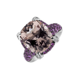 Elegantný prsteň s 18kt bielym zlatom zdobený diamantom, morganitom a zafírovou ružovou. Perfektný doplnok pre každú príležitosť na úspech. Šperk je súčasťou kolekcie Fantasy.
