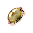 Prsteň vyrobený z 18kt ružového zlata s diamantmi a olivínom, ktorý sa môže pochváliť svojou dokonalosťou a starostlivo vybranými kameňmi, je symbolickou pečaťou večnej elegancie. Šperk je súčasťou kolekcie Fantasy.