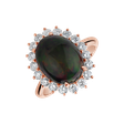 Exkluzívny prsteň zo 14kt ružového zlata, zdobený diamantmi a opálom, je majstrovským dielom šperkárskeho umenia. Jeho jedinečný dizajn a mimoriadna krása opálu odhaľujú skutočnú eleganciu. Šperk je súčasťou kolekcie Diana.