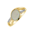 Jemne vyladený prsteň vyrobený zo 14kt žltého a bieleho zlata, zdobený brilantnými diamantmi a hlbokou opálovou bielou, je slávnostným vyjadrením hĺbky vašich pocitov a luxusným znakom vášho vkusu. Šperk je súčasťou kolekcie Blossoms.