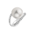 Krásny prsteň z 14kt bieleho zlata s diamantmi a sladkovodnou bielou perlou - čistota, nadčasovosť a krása vo vašej šperkovnici. Tento prsteň zaujme svojím jedinečným dizajnom a dodá vášmu vzhľadu nádych romantiky. Šperk je súčasťou kolekcie Ocean & River.
