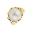 Elegantný prsteň so 14kt žltým zlatom, diamantmi a morskou bielou perlou. Perfektný doplnok pre každú príležitosť na úspech. Šperk je súčasťou kolekcie Ocean & River.