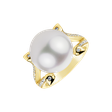 Perly vo vašej šperkovnici - čistota, nadčasovosť a krása. Krásny 18kt prsteň zo žltého zlata s diamantmi a morskou bielou perlou zaujme svojím jedinečným dizajnom a dodá vášmu vzhľadu nádych romantiky. Šperk je súčasťou kolekcie Ocean & River.