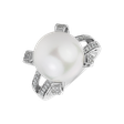 18kt prsteň z bieleho zlata s diamantmi a morskou bielou perlou, ktorá je ako symfónia svetla a elegancie. Jeho vynikajúci dizajn je cestou k úspechu, plný krásy a jemných tónov. Šperk je súčasťou kolekcie Ocean & River.