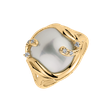 Elegantný prsteň so 14kt žltým zlatom, diamantmi a morskou bielou perlou. Perfektný doplnok pre každú príležitosť na úspech. Šperk je súčasťou kolekcie Ocean & River.
