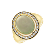 18kt prsteň zo žltého zlata s diamantmi a prehnitom symbolizujúci mier a harmóniu. Jeho zvodný lesk je ako oslava rovnováhy a štýlu, ideálny pre tých, ktorí si cenia prírodné krásy. Šperk je súčasťou kolekcie Blossoms.
