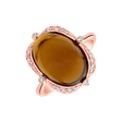 Odvaha je stelesnená v tomto 14kt prsteni z ružového zlata s diamantmi a srdcervúcim cogniak kremeňom, je to odkaz na vášnivé chvíle, ktoré stojí za to si zapamätať. Šperk je súčasťou kolekcie Blossoms.
