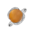 Tento prsteň z bieleho zlata 14kt s diamantmi a kogniakovým kremeňom je vyjadrením vášho jedinečného štýlu a chuti. Kremeň Cogniak prináša do vášho života hrejivý luxus a krásu, zatiaľ čo diamanty dodajú prsteňu nezameniteľný lesk. Šperk je súčasťou kolekcie Blossoms.