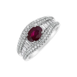 Obdarujte seba alebo milovanú osobu týmto prsteňom z bieleho zlata 18kt s diamantmi a rubínom, ktorý je symbolom jedinečnosti a čistoty pri každom nádychu. Perfektný šperk pre tých, ktorí ocenia krásu v každom detaile. Šperk je súčasťou kolekcie Glamour Edge.