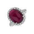 18kt prsteň z bieleho zlata s diamantmi, ktorého krásu zdôrazňuje krásny rubín, je symbolom večného úspechu. Jeho rafinovaný dizajn a žiarivý rubínový lesk prinášajú pocit luxusu a jedinečnosti. Šperk je súčasťou kolekcie Blossoms.