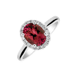S týmto exkluzívnym prsteňom vyrobeným zo 14kt bieleho zlata sa stanete stredobodom pozornosti. Jeho žiarivý rubín obklopený jasnými diamantmi predstavuje kombináciu luxusu a kúzla prírody. Šperk je súčasťou kolekcie Diana.