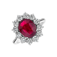 14kt prsteň z bieleho zlata s diamantmi a rubínom symbolizujúcim vášeň a krásu. Jeho zvodný lesk je ako oslava lásky a elegancie, ideálny pre tých, ktorí oceňujú romantiku a luxus. Šperk je súčasťou kolekcie Diana.