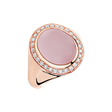 18-karátový prsteň z ružového zlata s diamantmi a ružovým kremeňom symbolizujúci lásku a nehu. Jeho zvodný lesk je ako oslava romantiky a elegancie, ideálny pre tých, ktorí oceňujú citlivosť a krásu. Šperk je súčasťou kolekcie Blossoms.