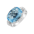 Každý lúč svetla sa javí jasnejší, keď sa odráža od tohto nádherného prsteňa z bieleho zlata 18kt s diamantmi a topásom swiss. Jeden šperk - tisíc okamihov nekonečnej brilancie. Šperk je súčasťou kolekcie Fantasy.