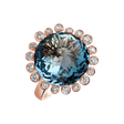 Elegantný prsteň z 18kt ružového zlata, zdobený diamantmi a topásovou oblohou - pre tých, ktorí si chcú dopriať skutočný šperk plný majestátnosti. Šperk je súčasťou kolekcie Fantasy.
