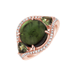 Prsteň vyrobený z 18kt ružového zlata s diamantmi a turmalínovou zelenou oslavuje nadčasovú krásu. Jeho jemný diamantový lesk zdôrazňuje ženskosť a sofistikovanosť. Šperk je súčasťou kolekcie Blossoms.