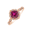 Tento prsteň z ružového zlata 14kt s diamantmi a fialovým turmalínom je vyjadrením vášho jedinečného štýlu a chuti. Fialový turmalín prináša do vášho života exotiku a krásu, zatiaľ čo diamanty dodávajú prsteňu nezameniteľný lesk. Šperk je súčasťou kolekcie Fantasy.