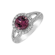 Romantický prsteň z 18kt bieleho zlata s diamantmi a fialovým turmalínom žiari vlastným jedinečným svetlom. Šperk je súčasťou kolekcie Luxury Classic.